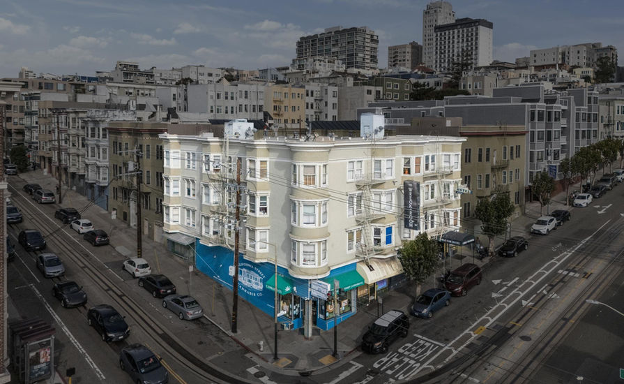 1388–1398 California Street is a fully occupied commercial property positioned at the prominent corner of California and Hyde in the heart of Nob Hill. The property is home to five commercial tenants, anchored by the Cable Car Hotel—a 70-room operation with 19 tourist hotel rooms and 51 SRO rooms—secured under a master lease through 2033. Additional tenants include a bar, cannabis